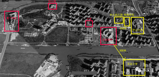 “苏州高新区文达实验初级中学”南侧300米的运河另一侧,是苏州高新区文达小学。也就是说,苏钢集团原地块上共有4所学校,且周边300米内,还有4所学校。