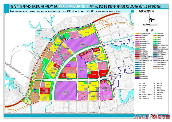 根据土地使用规划图显示,可利片区KL-01(罗文)单元规划范围为绕城高速、西庄路、新村大道围合区域,规划面积约4.35平方公里。
