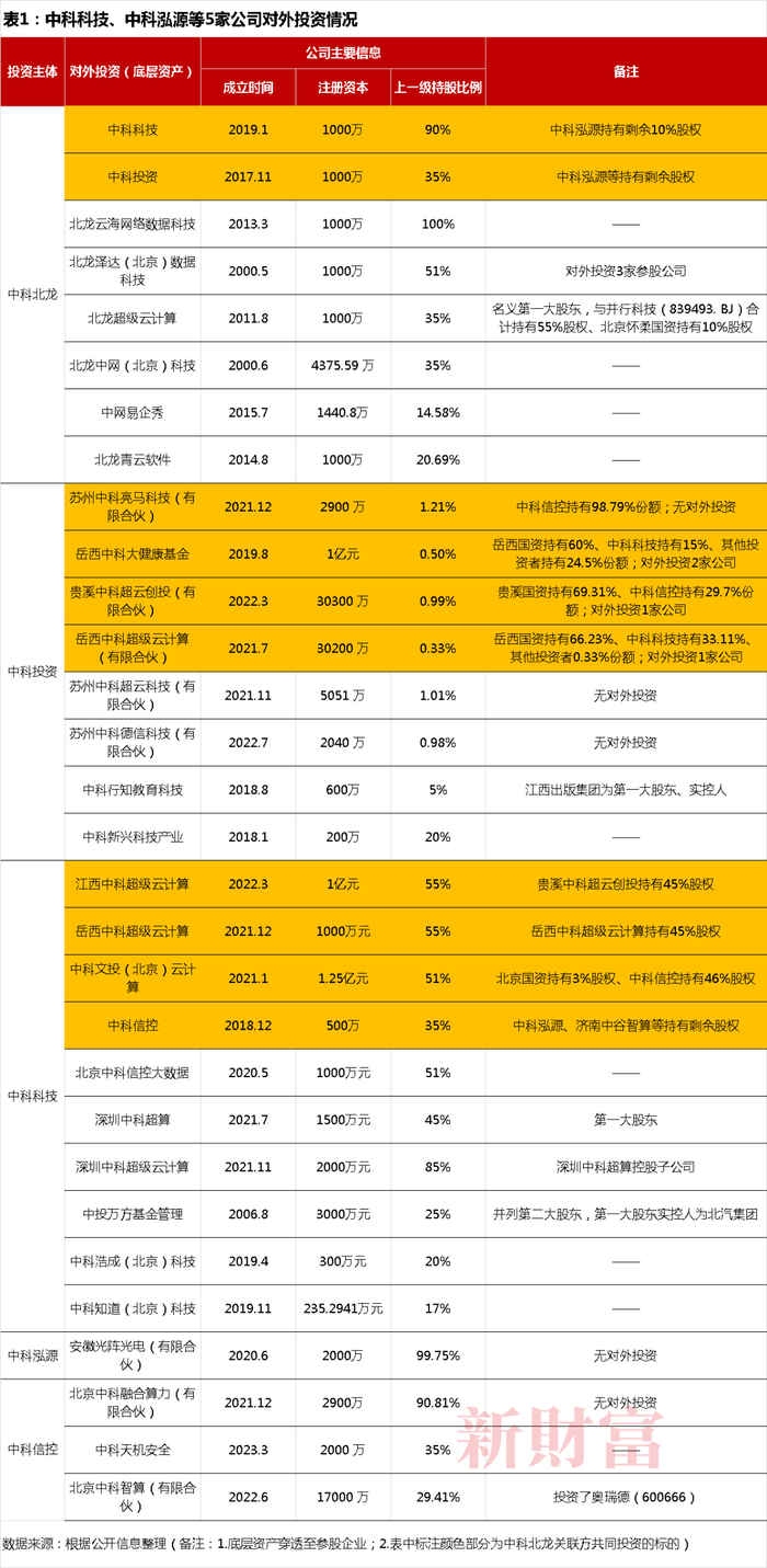 梳理中科北龙投资系5家公司的投资情况,可以发现其三大特点(表1)。