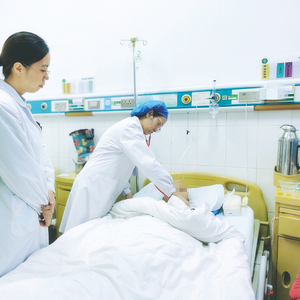 谭晓虹(中)在对患者进行规范化诊断。 (张丽凤 摄)
