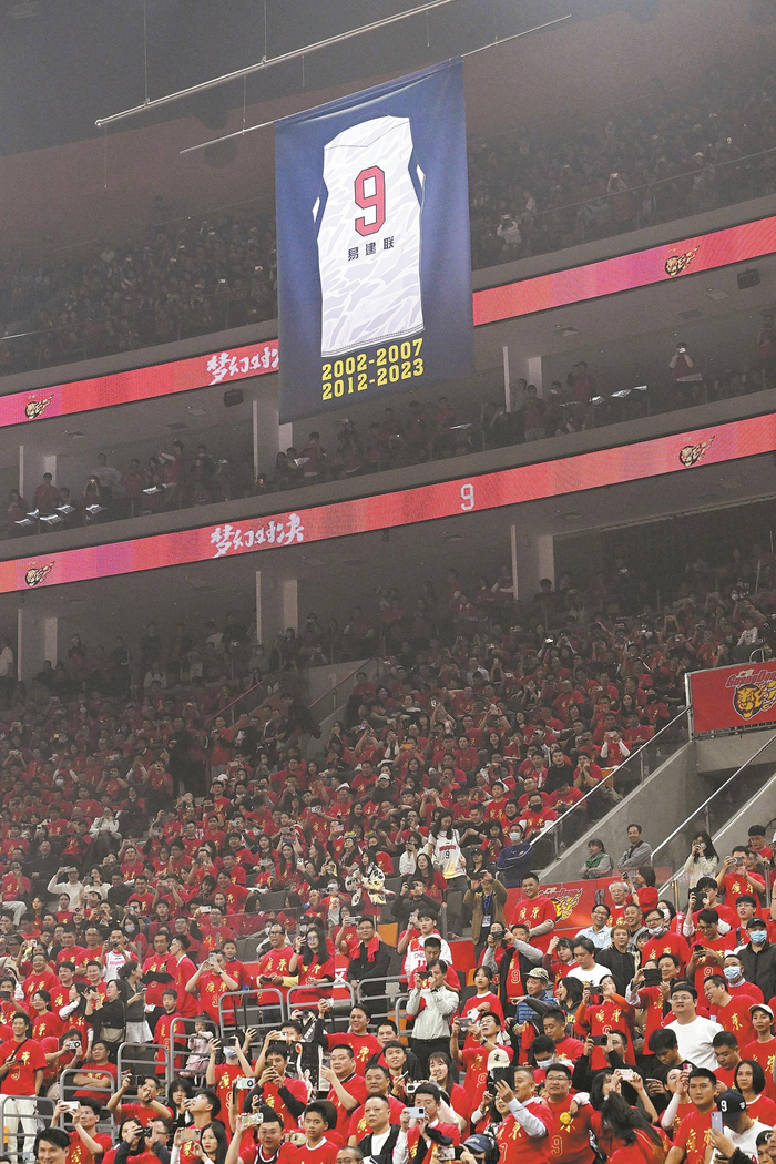 12月29日晚,9号球衣飘扬在广东东莞银行篮球中心上空,与杜锋的4号、朱芳雨的8号及积臣的15号球衣并肩。它的主人易建联也与这些前辈一样,由“名将”变为“名宿”。
