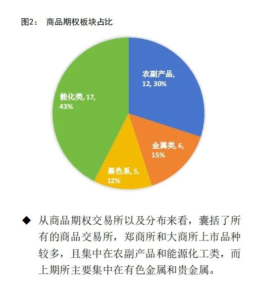 板块期权:从上市期权品种的分布来看,囊括了各类板块的商品期权,包括了有色金属、贵金属、黑色系、农副产品和能源化工类期权等。