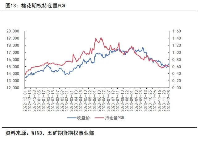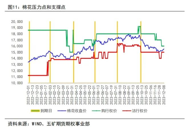 (2)棉花期权的震荡区间维持在大幅度的区间波动,上方压力点位有所下移,预计明年上方将进一步承压。