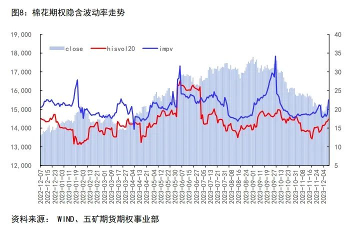 (2)预计明年棉花期权隐含波动率将维持在0.22偏向上区间波动且向上偏右波动。