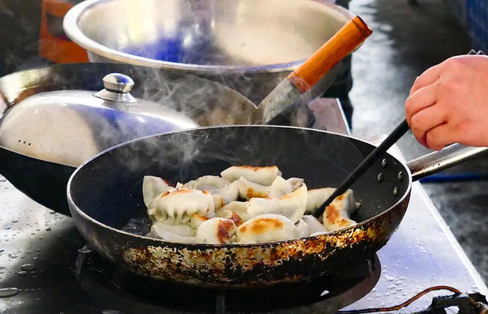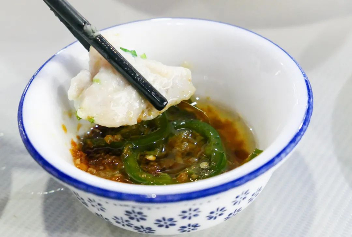 顾名思义,鱼饺子就是饺子,只不过饺子皮里的馅料是满满的鲮鱼肉,搭配韭菜、沙葛,味鲜且爽口。生煎的鱼饺子,汁水尤为丰富,蘸点店家特制的辣酱更是美味。