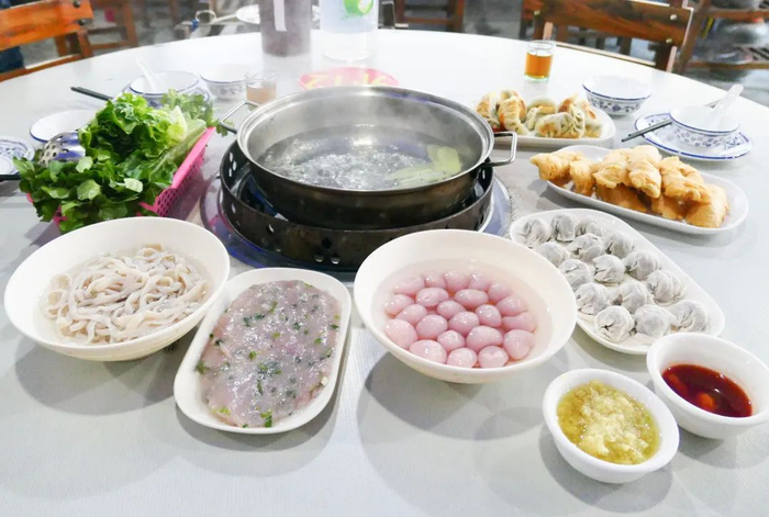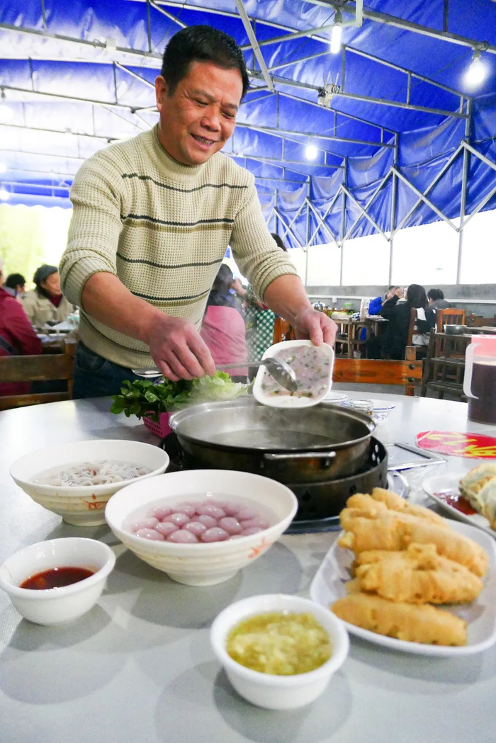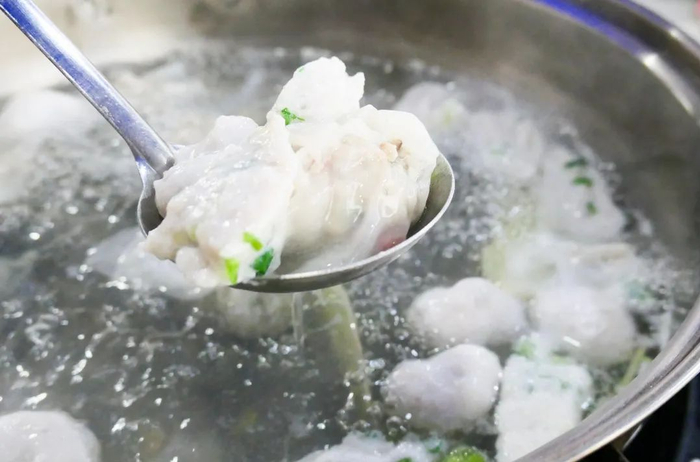 徐先生和秦先生是邻乡,对于他们来说,鱼包和鱼蛋承载着他们的童年记忆。“以前村里摆宴席时,乡厨一定会用鱼包、鱼蛋做小炒,是村宴中必不可少的菜式。后来,这些小吃才渐渐演变成火锅食材。”秦先生回忆道。南岗鱼蛋是用鲮鱼青加少许盐和清水制作而成的,鲮鱼的胶质丰富,所以其最大特色是口感弹牙。为了让更多人品尝到南岗的特色美食,秦先生和徐先生一拍即合,开了这家“章记”南岗鱼锅。