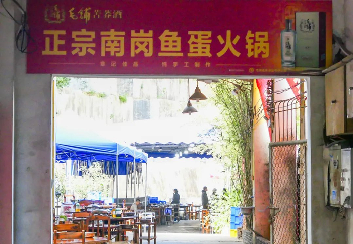 虽说南岗鱼锅是黄埔特色,然而这些小店大多藏身在村落小巷内,低调得很。正如记者前往采访的“章记”南岗鱼锅,“门前”招牌并不显眼,“门面”看上去更像是间小士多,但走进去往内里探寻,你才会发现里面别有洞天——一半桌椅放在半露天的环境下,一半放在毫无装修可言的敞开式房间里,而厨房则搭建在铁棚架下,师傅如何劏鲮鱼、挤鱼蛋、包鱼包,食客都能一目了然。“这里原本是家旧厂房,我们租下来改建成‘大排档’,一做就是12年。”老板之一秦先生介绍。
