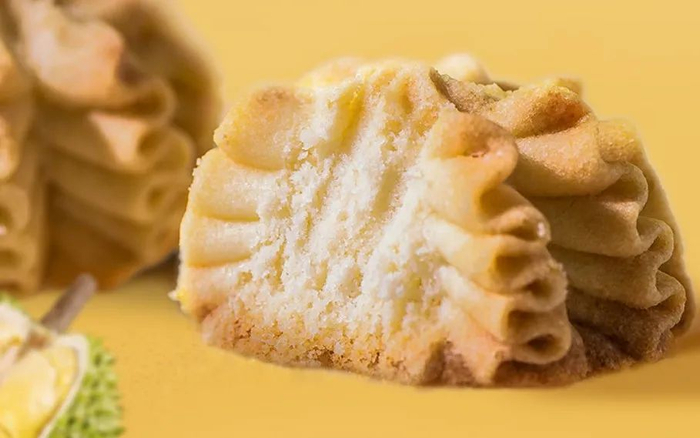新鲜榴莲经过清洗后,再通过冻干浓缩制粉,不加人工色素,保证原料天然健康,让曲奇拥有自然榴莲味。