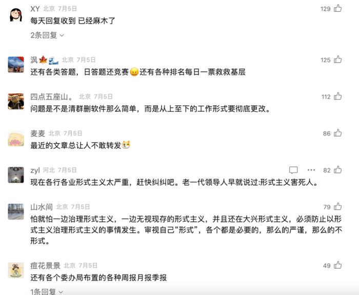 而针对更大范围内的形式主义乱象,长安观察也持续跟踪。“谁要念稿子,我就打瞌睡,以示反对”,犀利写道“文风、会风即是作风,将那些说多了的废话、摆多了的排场、做惯了的套路都丢到故纸堆”;这些地方,形式主义何以越减越多,提出不能以形式主义反对形式主义……一系列文章,让不少基层干部心有戚戚。