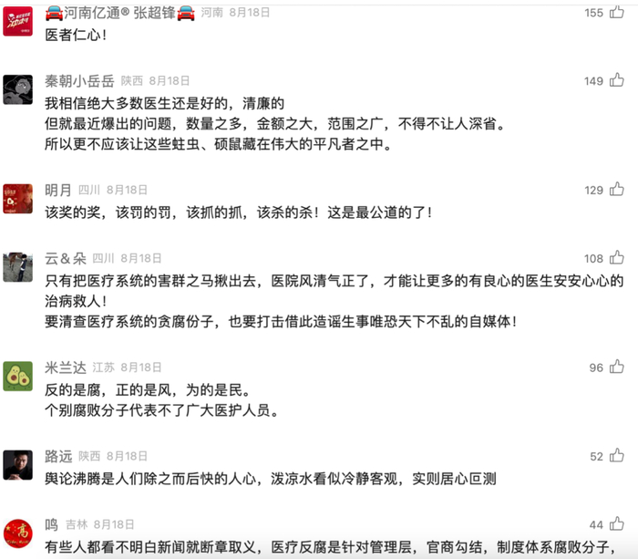 8月,医疗领域的反腐行动引发巨大关注,除了官方发布信息,舆论场上还涌动着大量借反腐之名混淆视听、煽动情绪、挑动对立之声。“长安观察”清晰指出:少数贪腐者罔顾医者仁心,私欲膨胀、气焰嚣张。但绝大多数的医护工作者遵规守纪、兢兢业业。刻意鼓噪渲染“洪洞县里无好人”,不仅不负责任,更是居心叵测。