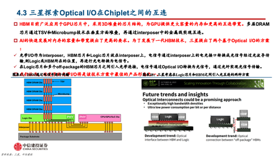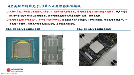 以前光学I/O主要应用在设备之间(服务器到交换机或交换机到交换机),现在渗透到板上芯片间光互连,未来会在芯片的chiplet之间实现光互连。随着AI的快速发展,多模态大模型的参数量大幅提升带来数据传输需求的爆发,无论是训练侧还是推理侧,数据在GPU和Switch之间以及GPU和HBM之间的传输带宽愈发成为整个系统的瓶颈。而硅光引擎目前是最佳的光学I/O产品形态之一,将大幅提升传输带宽。此外,英特尔已经推出了采用光互连技术的FPGA商业化产品Stratix 10,以及采用硅光互连技术的泛处理器XPU产品。