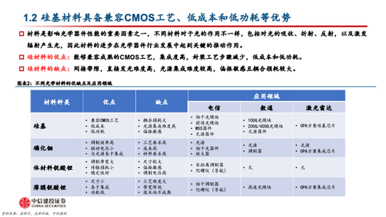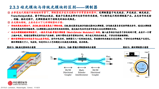 与传统光模块相比,硅光模块在有源和无源器件上均有明显区别,硅光技术可以使光模块成本有明显下降,但工艺是影响硅光模块是否能够实现量产的关键因素之一。硅光子技术主要是对光模块中的激光器、调制器和无源器件产生变化。假设在同样的良率水平下,硅光模块相比较传统光模块的成本有一定的下降,主要体现在:硅光模块的光源成本大幅降低;硅光芯片能够集成部分光无源器件以降低成本;硅光模块制造工艺成本大幅降低。硅光与CMOS工艺兼容性高,但也需要解决很多know-how问题,并且可能会影响最终硅光模块是否能大批量生产。