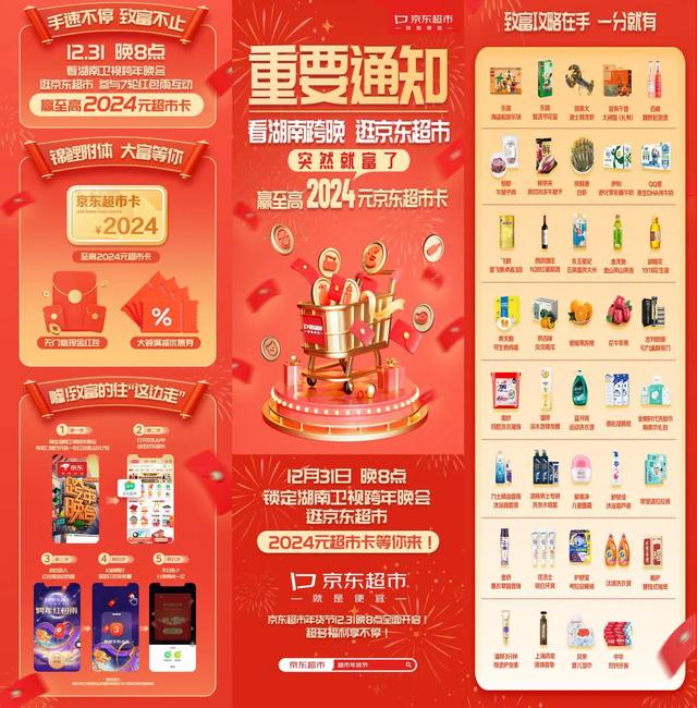 值得关注的是,京东超市还在湖南卫视跨年晚会中开设采销直播间,以直播形式呈现低价好物,满足消费者跨年期间换新囤货、亲友送礼等场景需求,李斯丹妮、张颜齐将现身京东超市采销直播间,与用户互动送福利。