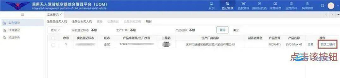 完成注册后,可在实名登记页面中查询到已完成注册登记的无人机,点击右侧[发送二维码]按钮。填写邮箱,下载附件并打印,将二维码粘贴至该无人机的机身上。