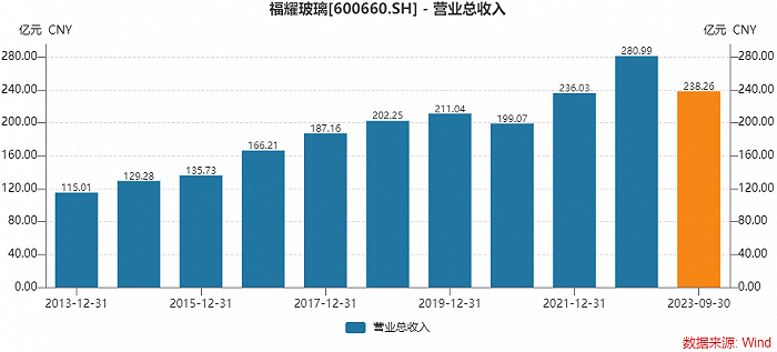 乘着汽车行业发展之势,福耀玻璃近三年业绩增势良好。2021年至2023年前三季度公司营业收入分别为236.03亿元、280.99亿元和238.26亿元,增速均接近20%,其中超过四成的营收来自海外;归母净利润分别为31.46亿元、47.56亿元和41.27亿元,增速有所起伏,但业绩表现不俗。