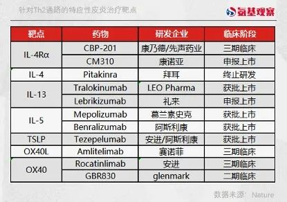 上述两个靶点外,针对特异性皮炎的治疗OX40的表现也值得期待。