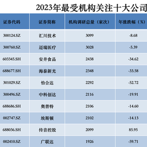 2023年最受机构关注十大公司:汇川技术当“机构调研王”,安井食品成新晋“黑马”