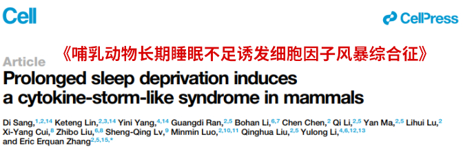 本文综合自:①Sang D, Lin K, Yang Y, Ran G, Li B, Chen C, Li Q, Ma Y, Lu L, Cui XY, Liu Z, Lv SQ, Luo M, Liu Q, Li Y, Zhang EE. Prolonged sleep deprivation induces a cytokine-storm-like syndrome in mammals. Cell. 2023 Dec 7;186(25):5500-5516.e21. doi: 10.1016/j.cell.2023.10.025. Epub 2023 Nov 27. PMID: 38016470.