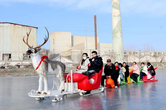 在冰天雪地中,看热火朝天的民俗表演。位于第一师阿拉尔市十六团的荷花主题公园,其中有滑雪圈、碰碰球、堆雪人、雪地摩托、卡丁车、滑冰等多个项目,除了惊险刺激的冰雪项目,还有舞龙、舞狮、高跷、旱船、旋鼓等精彩的民俗表演为大家呈现。