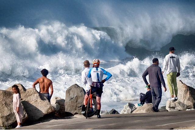 人们对晴天出现如此大的巨浪感到好奇