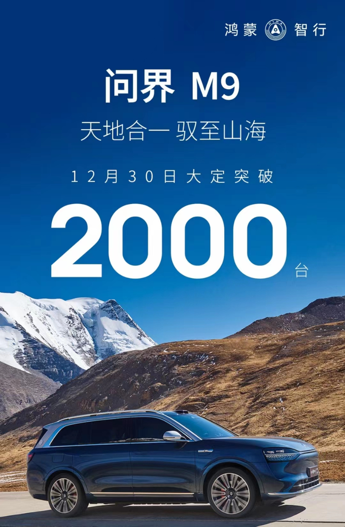 记者了解到,12月30日问界M9一天销售大定突破2000辆。