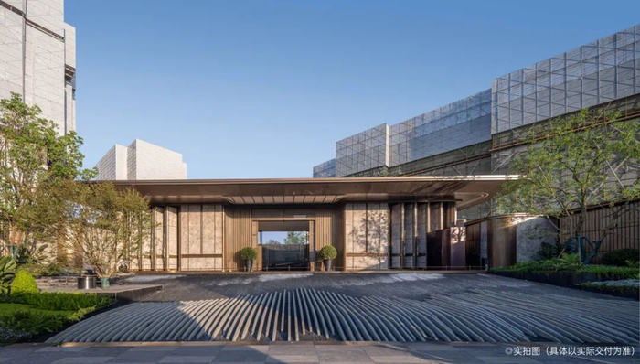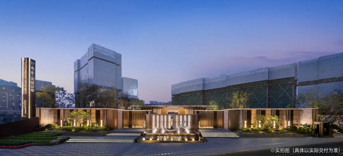“礼宾级归家路”——约55的主入口,长约14m、高约4m的星级迎宾水景,让度假的氛围感扑面而来;