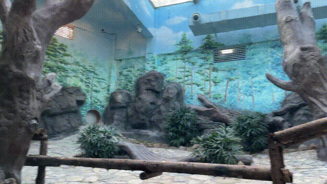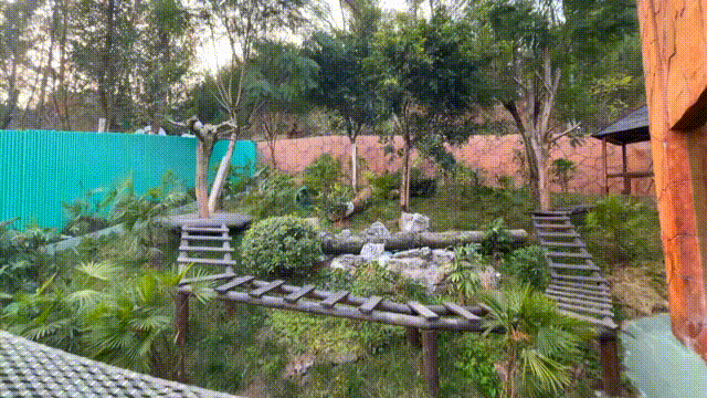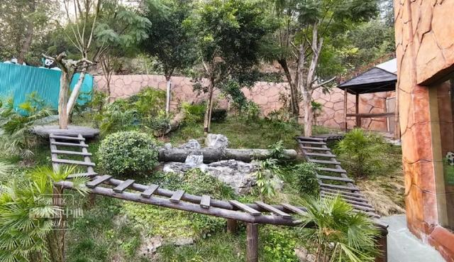 室外的运动场更是别具一格,草皮满地、木栖架、假山等等都是为它们精心设计的玩乐设施,这里还有重庆特有的3D魔幻风格,绝对能满足它们攀爬打滚。