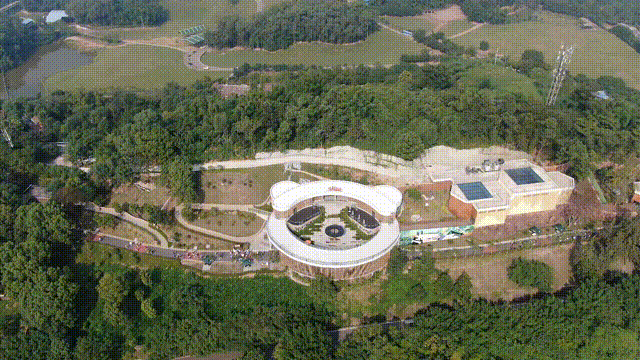 永川乐和乐都熊猫馆占地面积达到了130,000平方米!馆舍周边环境幽静,而且从高处看下去,整个熊猫馆的布局,简直就是一个超级可爱的熊猫脸!