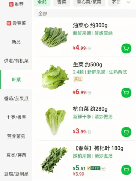 但是对于不同的产品而言,生鲜平台和菜市场是具备不同的竞争力的。一些绿色蔬菜,鲜肉,大部分人喜欢去菜市场。但是蒜头、姜、瓜果,生鲜平台具有价格优势,就会选择在平台购买。