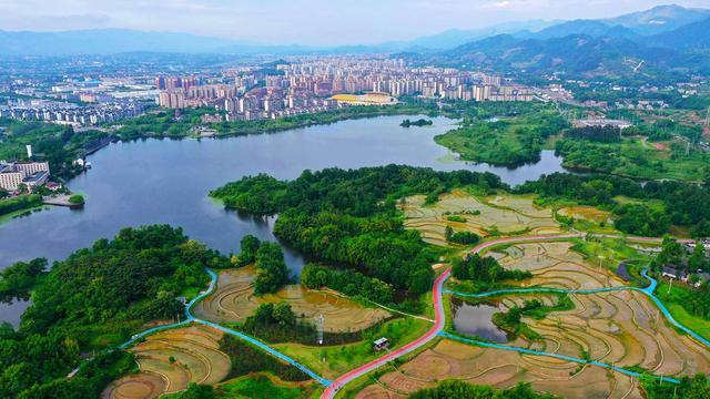 5月16日,梁平区双桂湖国家湿地公园,湿地与城市、森林、绿地融为一体,构成一幅湿地美、生态靓的宜人画卷。