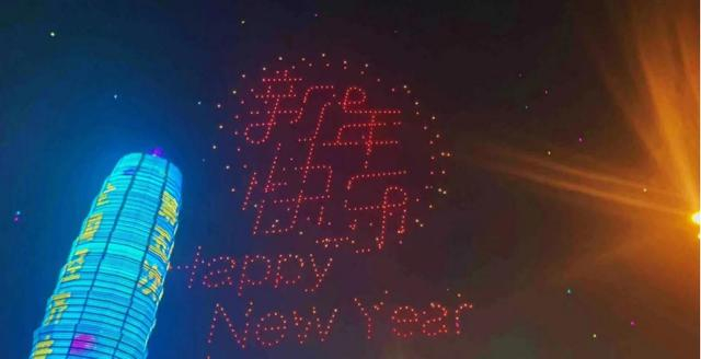 无人机表演秀夜空里恭贺新岁