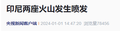 据央视援引印度尼西亚火山与地质灾害研究机构消息,当地时间1月1日5时23分,北京时间6时23分,印尼伊里莱沃托洛科火山发生喷发,火山灰柱高300米,喷发持续时间为53秒。