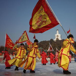 2023年12月29日,北海公园冰场上演皇家冰嬉表演。新京报记者 薛珺 摄