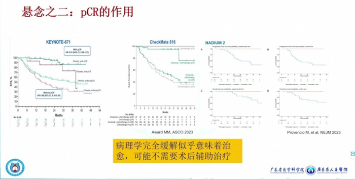 多项研究结果显示,达到pCR患者的预后明显更优,这或意味着pCR患者可能不需要接受术后辅助治疗。