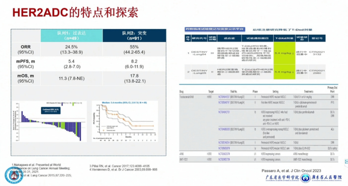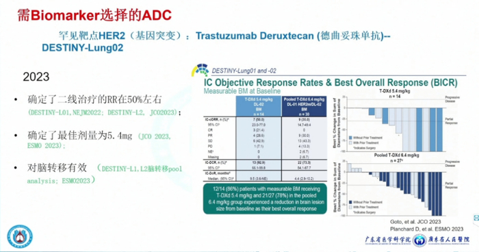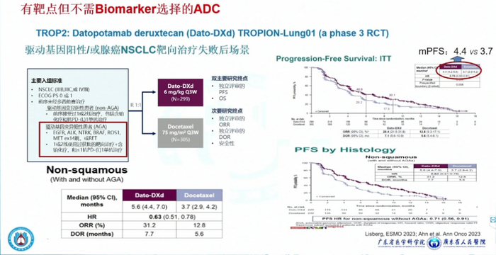 针对有靶点但不需生物标志物选择的ADC药物研究也正在进行之中,主要针对HER3以及TROP2靶点,研究包括Ⅱ期HERTHENA-Lung01以及Ⅲ期TROPION-Lung01研究。