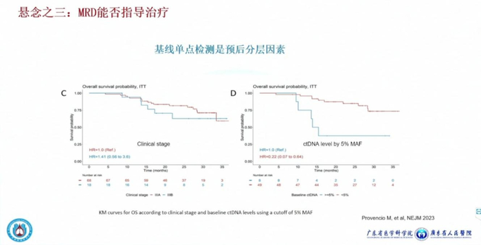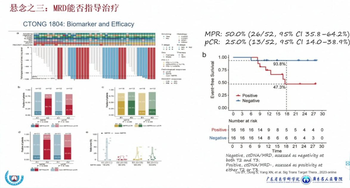 单次的微小残留病灶(MRD)检测并不能有效地预测患者的预后。而CTONG1804研究显示,动态的MRD检测有助于预测患者的预后。