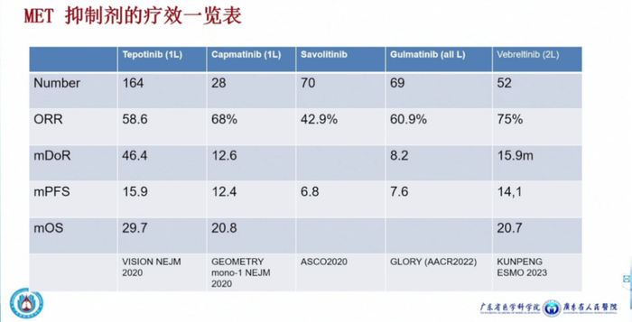 全球目前针对METex14跳跃突变的MET抑制剂共五款,包括卡马替尼、特泊替尼、赛沃替尼、谷美替尼以及伯瑞替尼,总体疗效数据如下(非头对头研究,勿直接对比)。