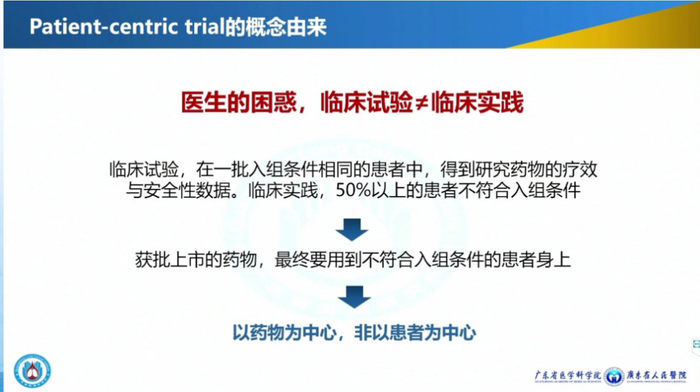 在本场分享的最后,也是作为压轴内容分享的话题便是“以病人为中心的临床试验”(patient-centric trial)。在开头,吴一龙教授便一针见血地指出了目前临床药物相关试验所面临的一大痛点。