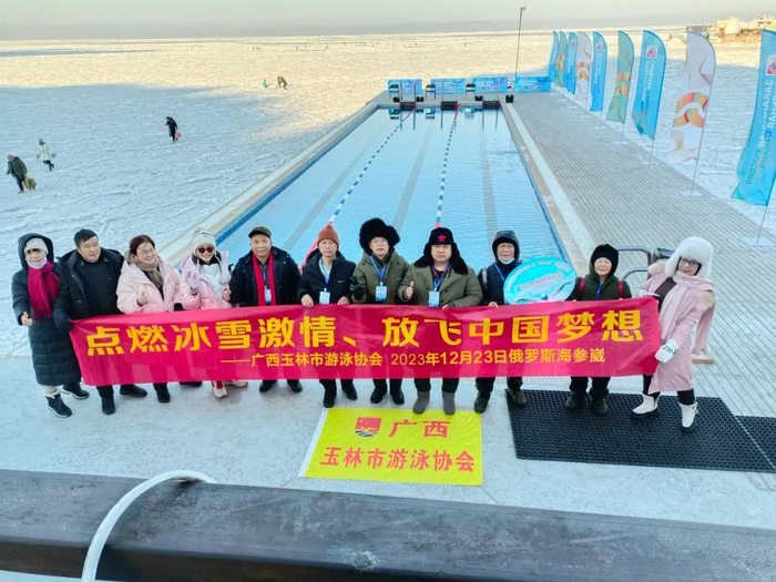 罗天参加的是“欢乐冰雪 共创未来”东宁大众冰雪季暨2023第五届中国(东宁)——俄罗斯(符拉迪沃斯托克)国际冬泳互访公开赛。“玉林市游泳协会应邀组队参加这次活动,出行的11名会员当中,有7个报名参赛,我是其中之一。”罗天说,2023年12月23日,赛事第一站比赛在俄罗斯符拉迪沃斯托克市阿穆尔湾举行,他报名参加F组(70岁以上)的25米自由泳、25米蛙泳比赛。