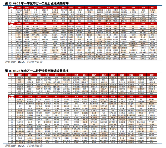 “春季躁动”行情更关注可能的政策催化方向和全年基本面改善预期方向,沿此逻辑可配置基于稳增长和经济预期修复的周期类资产,基于产业景气逻辑的科技及医药类资产。统计08-23年一季度各行业涨跌幅排序与全年行业盈利改善幅度关系,可发现自14年以来,一季度收益靠前的板块与全年盈利改善幅度居前板块的重合度较高且较前期明显提升,收益居前的6大板块中,2~3个板块的盈利改善幅度在全年排前8(前25%)。而另一方面,对于政策预期的炒作特征也较明显,如16-17年供改催化下周期板块表现居前,19年贸易战环境下自主可控概念崛起。若本轮“春季躁动”行情展开,或呈现“周期搭台,成长唱戏”特征,随着基本面预期边际转好,估值低位背景下,进一步稳预期和政策信号的验证有望催化情绪面的触底反弹,基于稳增长和经济预期修复的周期板块搭台,同时2024年产业周期确定性向上的科技、医药等成长参与唱戏。