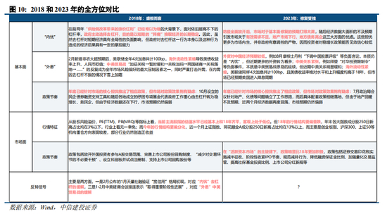 2019年初的修复行情对本轮市场具有参考意义。复盘历史,今年行情与18年有相似之处,当前已经位于底部区域,期待明年能收获类似19年的行情反转。根据历史经验,19年市场开启修复行情经历如下过程:1月4日央行宣布全面降准1个百分点;1月31日制造业PMI录得49.5%,在连续4个月回落后,较上月微升0.1个百分点,略超预期的49.3%;2月11日春节消费数据显示,银联网络交易再创春节长假历史新高,较去年同期增长71.4%;最重要的是2月15日盘后公布的“天量”社融,1月社会融资规模增量达4.64万亿元,远超预期的3.3万亿元,而前值接近1.59万亿元——“开门红”比市场预想得更强劲,“宽信用”格局初步显现(经济数据验证“内忧”缓解)。于是,19年就此开启牛市主升浪。“外患”方面,19年1月8日,特朗普发布推文表示“与中国的磋商进行得非常顺利”(Talks with China are going very well);1月31日,华盛顿会谈“取得重要阶段性进展”;2月15日,第六轮高级别磋商“又取得了重要阶段性进展”(“外患”解除的憧憬,虽然此后5月5日特朗普发推表态加征关税证伪了这一预期)。此外,这一阶段人民币汇率继续升值。与此同时,19年初资本市场政策也继续密集推出,如下表1所示。参考19年,我们认为基本面核心“症结”的好转是市场反转的关键所在,市场的长期担忧需要短期相关经济数据的强劲表现来打消。