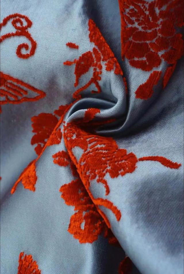 漳缎是一种系全真丝色织提花绒织物,以缎纹为地,绒经起花,由两组经线和四组纬线交织而成,其历史可以追溯到元代,至今已超过600年。漳缎的图案和色彩不仅具有颇高的审美价值,还蕴含了丰富的东方文化。