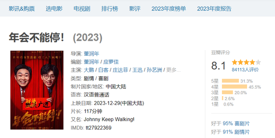另外,道出打工人心声的电影《年会不能停!》目前豆瓣评分8.1分,也成为元旦档口碑最佳的电影之一,市场认为后期有望实现票房逆袭。该片由董润年担任导演,主演为大鹏、白客等人,目前在元旦档票房中排名第二。