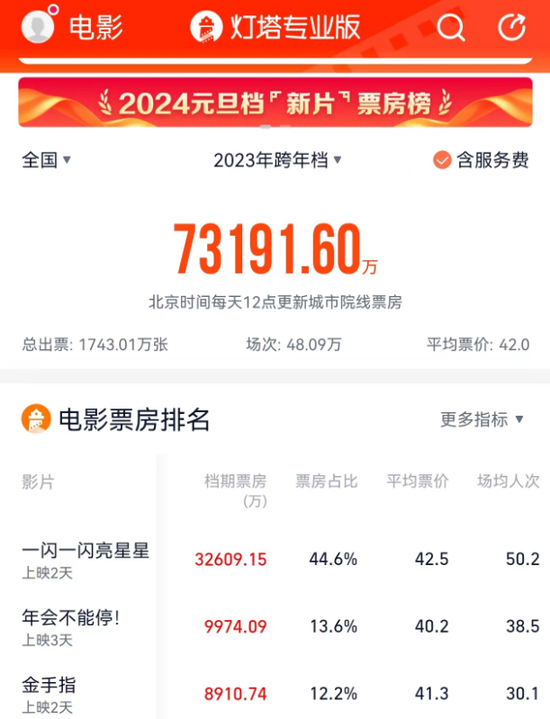 从票房情况来看,今年元旦档票房第一既不是梁朝伟、刘德华联手出演的《金手指》,也不是冯氏喜剧新作《非诚勿扰3》,而是爱情电影《一闪一闪亮星星》。截至发稿,《一闪一闪亮星星》票房已逼近6亿元,其中跨年档当日创造3.26亿元的票房成绩。