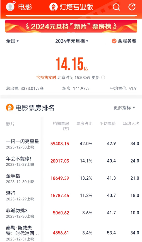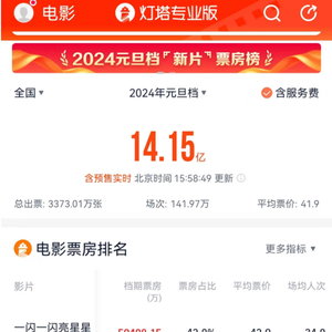 从近期电影票房数据中,不难得出上述结论。在元旦档超14亿元的总票房中,12月31日的跨年档票房就达到7.3亿元,占比过半。单日超7亿元的成绩,同样刷新了中国影史跨年档票房纪录。