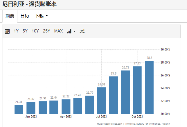 当前,这个非洲最大经济体正面临着增长疲软、创纪录的债务和支柱产业石油业低迷的多重挑战。去年6月,尼日利亚总统蒂努布(Bola Tinubu)解除了上任9年的央行行长埃梅菲莱(Godwin Emefiele)的职务,随后央行的汇率制度改革在美元储备不足的问题下进一步加剧了通胀压力,尼日利亚奈拉年底创下了历史新低——1美元兑1248奈拉。