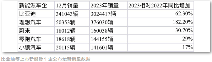 新能源汽车2023年销量排名初定 比亚迪年销量上破300万辆