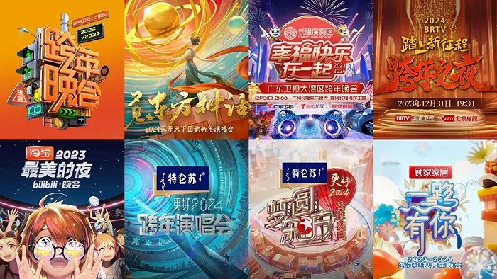 2023年12月31日晚,央视总台、湖南卫视、江苏卫视、浙江卫视、东方卫视、北京卫视、哔哩哔哩(下称B站)等纷纷开唱,表演应接不暇,数量与热度为近年来最强。