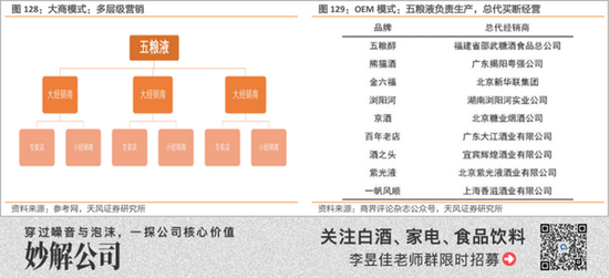 五粮液是凭借大商模式崛起的典型代表。大商模式就是总代模式,大商模式下产品由一级大商自主决定价格,销售给下游的二三级经销商乃至终端,各级经销商各自赚取价差。