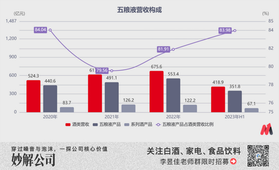 五粮液系列营收占比常年在80%之上,是公司营收的最大支柱。